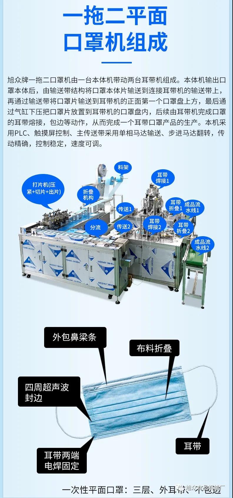 旭眾一拖二全自動平面口罩機